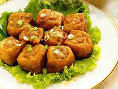 茶宴食品與酒宴亦有區(qū)別,主要是較清淡的面食與果品,統(tǒng)稱茶食。前引《世說》中所提的“粽”即是糯米作的一種茶食,也即是《大金國志》中所提到的茶食——蜜糕。關(guān)于茶食的最好記述見日本的《禪林小歌》,書中在介紹源自中國的唐式茶會(huì)時(shí)寫到:“端上水晶包子(葛粉做)、驢腸羹(似驢腸)、水精紅羹、鱉羹(狀似)、豬羹(形似豬肝)、甫美羹、寸金羹(因金色寸方得名)、白魚羹(白色、似白魚)、骨頭羹、都蘆羹等羹湯類;乳餅(小麥餅、形似乳房)、茶麻餅、饅頭、卷餅、溫餅等餅類及餛飩、螺結(jié)、柳葉面、相皮面、經(jīng)帶面、打面、素面、韭葉面、冷面等?!笨腿藗兏唷罢_之”(互勸意)。隨后用高緣果盒盛裝龍眼、荔枝、榛子、蘋果、胡桃、榧子、松子、棗杏、栗柿、溫州桔、薯等。由于是禪林,上列食品均為素食。在一般人的茶食中,也有葷菜,如陸游獨(dú)好鴨腳,在《聽雪為客置茶果》中寫到:“不饤栗和梨,猶能烹鴨腳?!?/p>