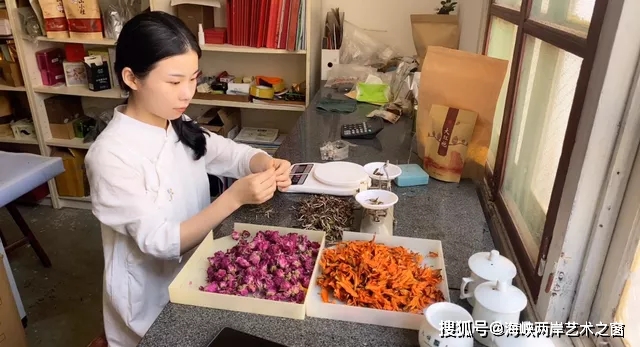 將茶球輕輕放入熱水,不一會(huì),花瓣在水中慢慢綻放,露出花蕊,好似清水出芙蓉,又如同少女翩翩起舞。坐在案臺(tái)前,李陽(yáng)正在認(rèn)真地觀察著花舞茶在水中的姿態(tài)。李陽(yáng)是福建師范大學(xué)的一名在讀碩士研究生,也是花舞茶工藝的第二代傳承人,除了完成學(xué)業(yè)外,她幾乎都在花舞茶實(shí)驗(yàn)室,通過(guò)反復(fù)測(cè)驗(yàn),潛心研發(fā)新口味的產(chǎn)品。11月5日,記者在福建師范大學(xué)約訪了李陽(yáng)。