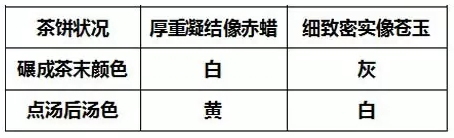 關于鑒賞,宋徽宗趙佶主要是通過制作好的茶餅外形及其在點茶時的茶湯顏色來進行。具體鑒賞方法通過下面三個表格的對比我們便可一目了然,掌握如何從關鍵之處鑒別、明白茶葉的各項品質。