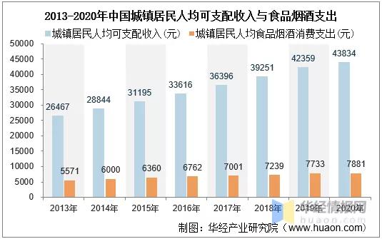 隨著我國經(jīng)濟(jì)持續(xù)向好發(fā)展,城鎮(zhèn)居民人均收入與消費(fèi)水平持續(xù)提升。2013-2020年中國城鎮(zhèn)居民人均可支配收入由26467元增長至43834元,食品煙酒消費(fèi)支出由5571元增長至7881元??焖僭鲩L的消費(fèi)能力帶來多元化、品質(zhì)化的消費(fèi)升級需求,利好整體大消費(fèi)行業(yè),成為支撐新茶飲行業(yè)消費(fèi)的基本盤。