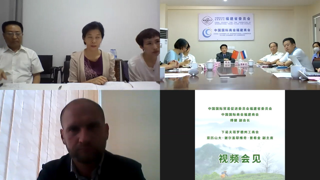 福建省貿(mào)促會(huì)與俄羅斯下諾夫哥羅德州工商會(huì)視頻會(huì)見(jiàn)現(xiàn)場(chǎng)