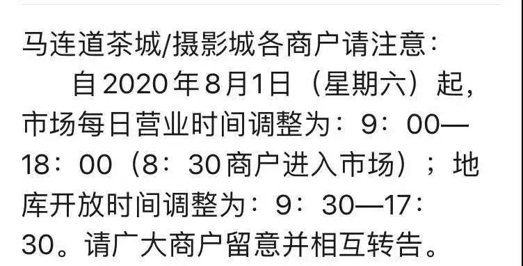 7月22日起,馬連道二商集團(tuán)旗下的國際茶城、京華緣茶城、天福緣市場已恢復(fù)正常營業(yè),每天營業(yè)時間為9:00-19:00,進(jìn)入茶城須出示健康寶,不必進(jìn)行體溫檢測。