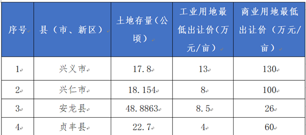 目前,黔西南州各縣(市、新區(qū))土地存量約192.2036公頃。全州地表水、地下水資源量比較豐富,城鎮(zhèn)和工業(yè)園區(qū)供水設(shè)施較為完善。非居民用水價格3.2-4.68元/立方米;特種用水價格:4.5-8.4元/立方米。
